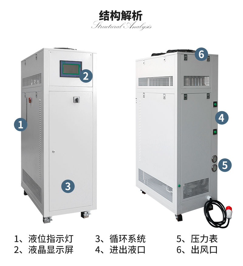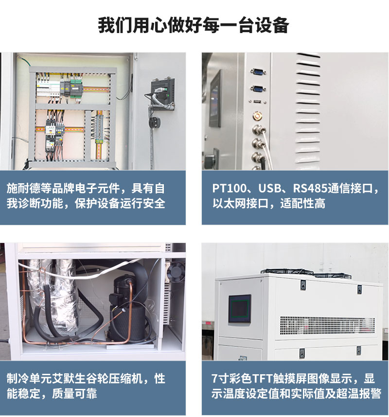 | 輸入、顯示 | 顯示設定溫度和出液口溫度、回液口溫度,7寸彩色觸摸屏 | |||||